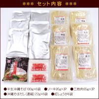 ■内容量:半生沖縄そば100g×6袋、ソーキ95g×3個、三枚肉65g×3個、そばだし22g×6袋、紅しょうが6袋