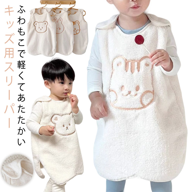 スリーパー 冬 起毛 冬用 もこもこ 子供 キッズ 赤ちゃん ベビー ベスト ボア フリース 袖なし 横開き 寝冷え防止 寝具 着る毛布 着る布団 フ