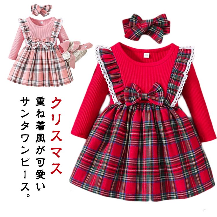 | 重ね着風が可愛いサンタワンピース。 クリスマス気分を一気に盛り上げる、重ね着風デザインのサンタワンピース、1枚でしっかり華やぐ主役級スタイルです。 同柄のヘアバンド付き、写真映え抜群。 肩フリルが動くたびにひらりと可愛く、子どもらしい愛らしさを引き立てます。 柔らかく着心地のいい生地で、長時間の着用も快適。 発表会、パーティー、クリスマス会、家族写真、お出かけに大人気のアイテムです。 | |