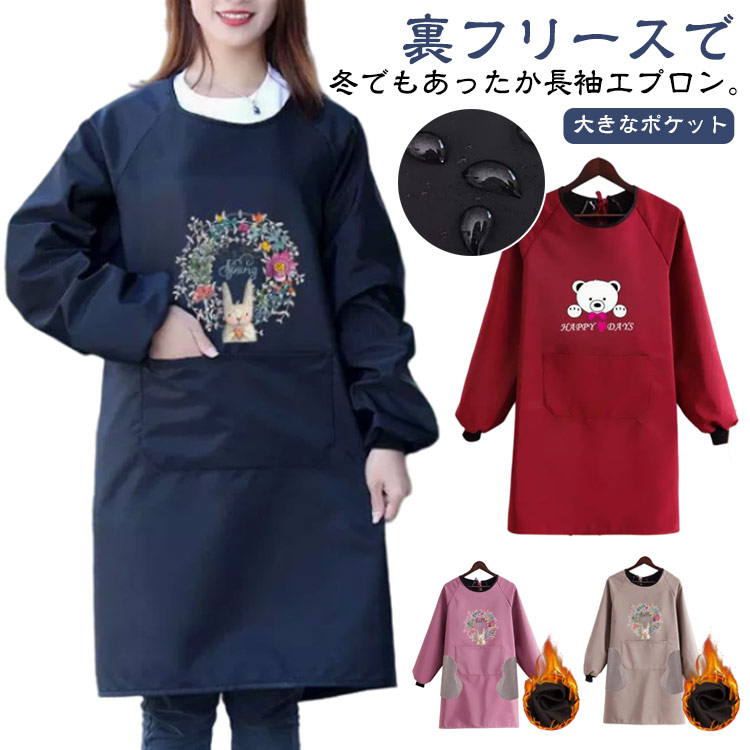 | 裏フリースで冬でもあったか長袖エプロン。 しっかり中の服を保護してくれるため、お料理教室などにも便利です。 袖口リブも水仕事のとき重宝します。 家事が好きな方も好きでない方も、あったかく楽しい日常となりますように♪ ※濡れたり、ソースで汚れたりした場合はなるべく早くふき取るようにしてください。 | |