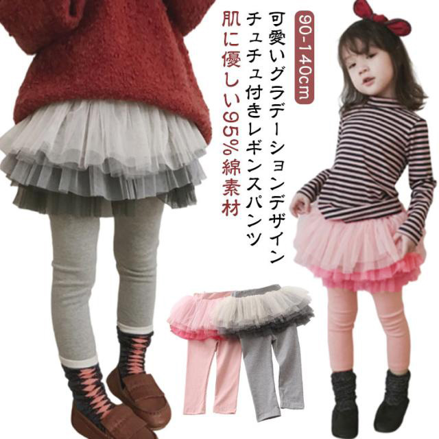 | 肌に優しい95%綿素材 可愛いグラデーションデザイン チュチュ付きレギンスパンツ 90-140cm コストパフォーマンスの高いボリューミーチュールスカートです。オールシーズン使える・普段着にぴったり!伸縮性が高く、生地も柔らかいので、普段着にもお出かけにも大活躍。 蛍光増白剤を使用していません、肌ざわり柔らかな生地で、子供の敏感な肌にやさしいです。通気性はとてもいいです。縫製もしっかりで丁寧で、元気に動きまわるお子様にもご安心頂きます。 ほんのり透けるチュールが3層重なった、お姫様のようなデザイン。ブラウス、Tシャツ、セーター、トレーナー、カーディガンなど、様々なトップスを合わせられます。通園、通学や休日のお出かけなど幅広く使って頂けます。 ウエストは、1周ゴム入りで伸縮性があります。体によくフィットして履くだけで簡単!子供の動きを妨げず。適度な厚さのストレッチ素材で初秋から夏前まで長〜く着回せます。使い勝手バツグンで何着か持っていても | |
