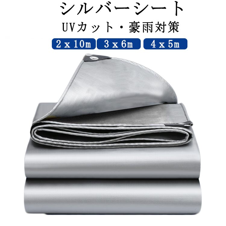 防水シート 2*10m 3*6m 4*5m シルバーシート 厚手 屋外 防雨シート UVシート 遮光ネット 台風 ゲリラ豪雨 対策 雨よけ棚 断熱シー