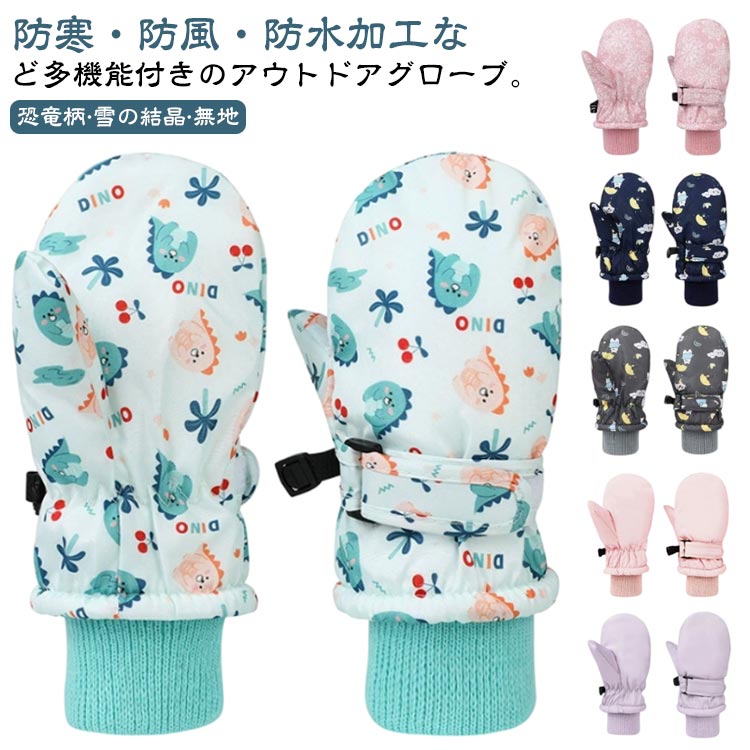 | 防寒・防風・防水加工など多機能付きのアウトドアグローブ。【恐竜柄?雪の結晶?無地】 撥水加工・中はあったかフリース素材で冷たい雪をさわっても中はポカポカです。 スキーやスノーボードにも大活躍! 袖口はリブ素材で小さなお子様でも装着しやすい。 紛失防止のための左右連結バックルを採用しました。 可愛いウィンターミトンで元気いっぱい雪遊びを楽しめますね♪ 裏面はボアフリースで、しっかりあたたかい 手洗いOKで清潔に保てます | |