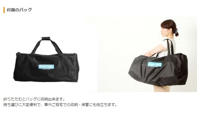・剛性の高い構造ながら折りたたむと超コンパクトサイズ、小さなクルマや狭い場所でもラクラク収納可能