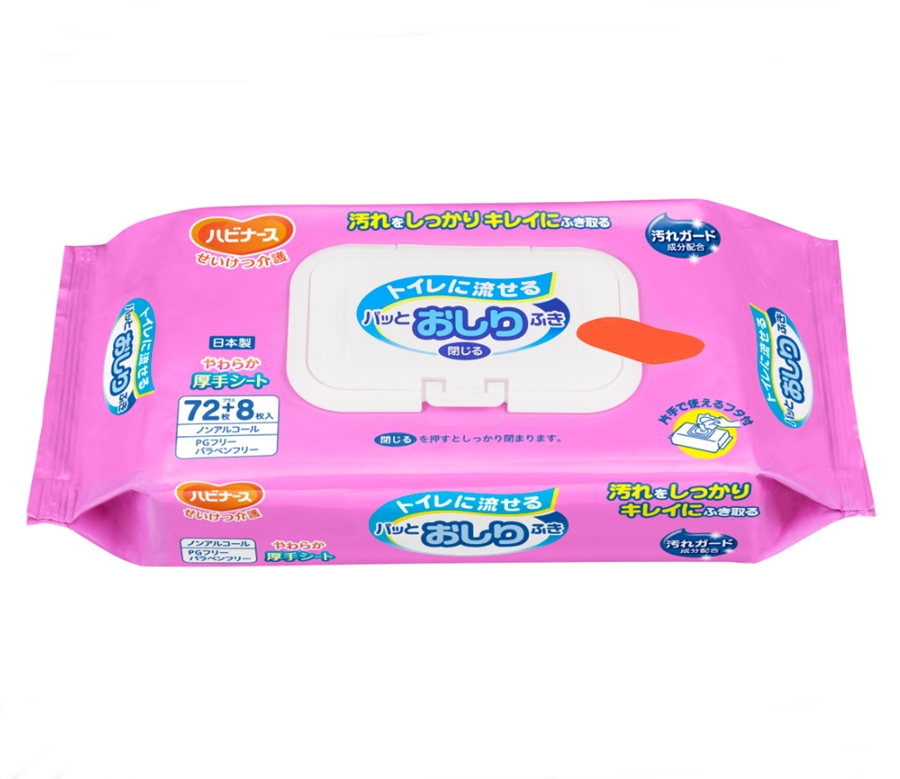 (ピジョンタヒラ) ハビナース トイレに流せるパッとおしりふき (72枚+8枚)×20個(ケース) ノンアルコール