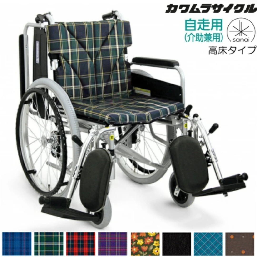 (カワムラサイクル) 自走式車椅子 高床タイプ KA822-40(38・42)ELB-H 脚部エレベーティング式 前座高45.5cm エアータイヤ仕様 おしゃれ