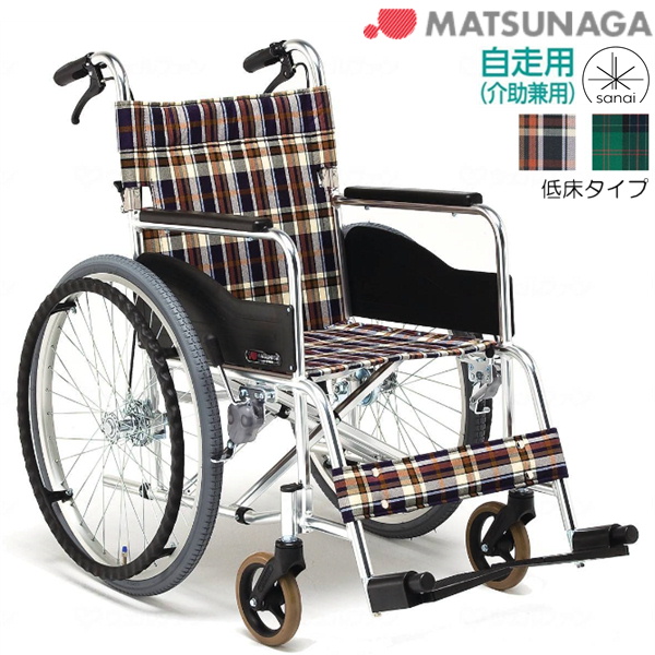 (松永製作所) 車椅子 自走式 低床タイプ 前座高38cm AR-211B 折りたたみ エアータイヤ仕様 足漕ぎ 座幅38/40/42cm JISマーク取得機種