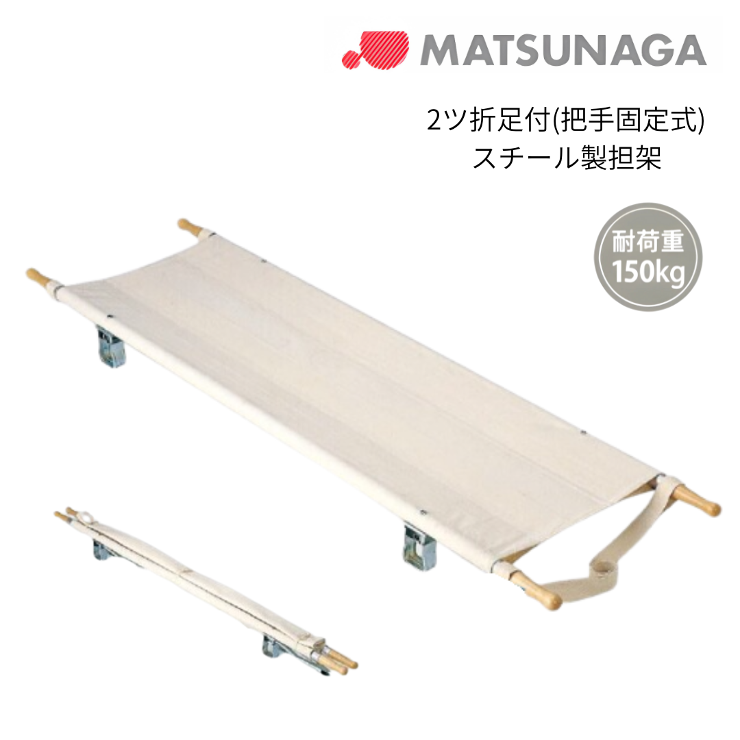 (法人宛先限定) (松永製作所) ポール担架 2ツ折足付 把手固定式 スチール製 MT-2TK 折りたたみ 簡易担架 防災 災害 救急 救護 収納袋別売