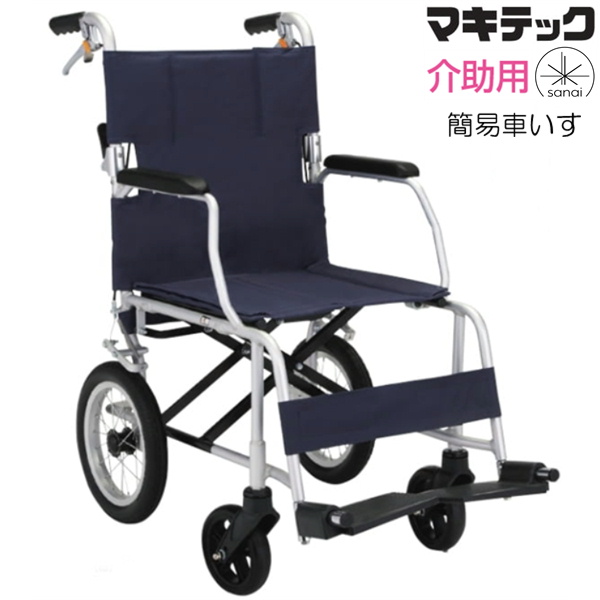 (マキテック) コンパクト車いす 介助式 FINE NR-100SB 軽量 ノーパンクタイヤ 簡易車椅子 耐荷重75kg 旅行 折りたたみ