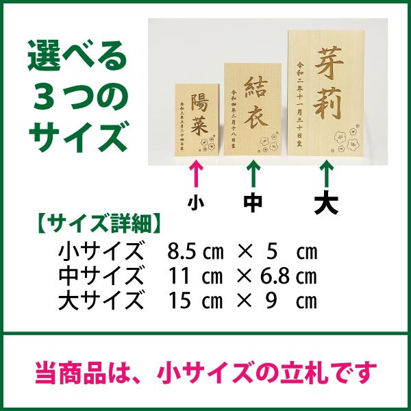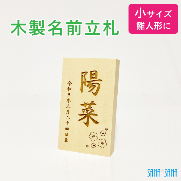 【小サイズ】 立札:雛人形・桃の節句人形用 名前札・名前立札(木製・ヒバ材)名入れ無料/名前旗の代わりに/メール便送料無料/雛人形 名前 立札