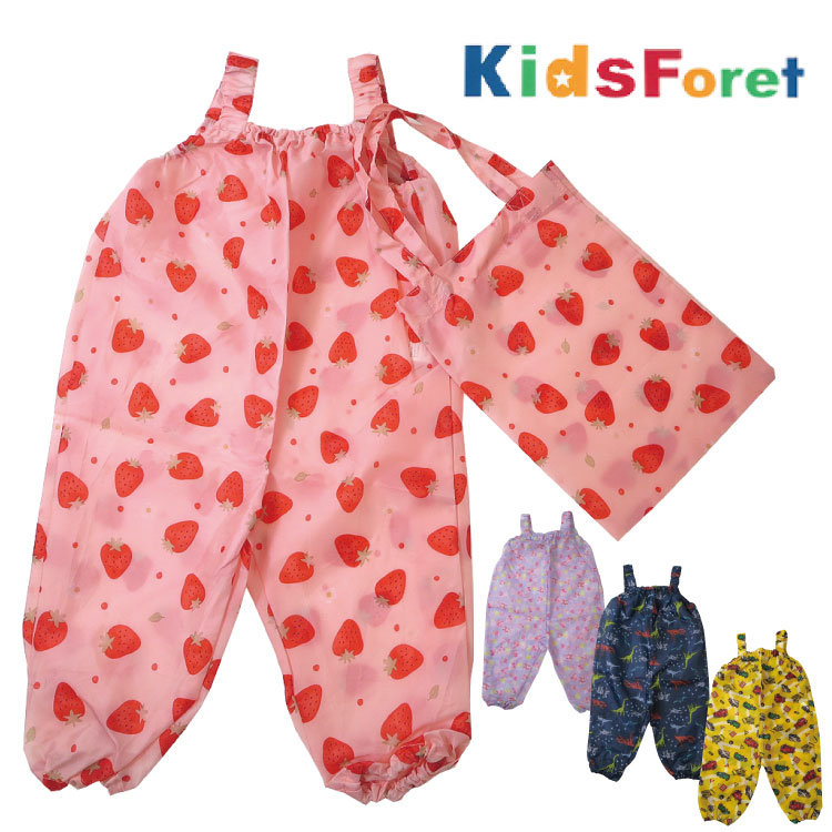 お砂場着 レインパンツ Kids Foret キッズフォーレ 男の子 女の子 収納袋付き 撥水 働く車 恐竜 リボン いちご B57803