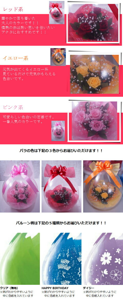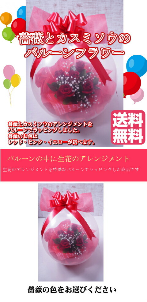 バルーンギフト 誕生日プレゼント【生花】バルーンフラワー 薔薇バラとカスミソウ 誕生日 お祝 バラ色バラ色選べます バラのアレンジメント 風船の中にお花