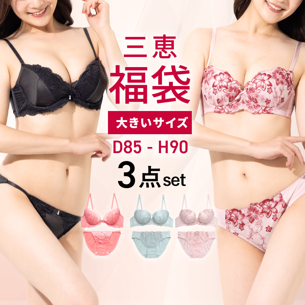 送料無料 大きいサイズ福袋 2024 レディース 下着福袋 ブラ&ショーツ セットX3組入 ブラセット ブラショー ブラ&ショーツ ブラジャー ブラ福袋 アンダー90 クイーンサイズ