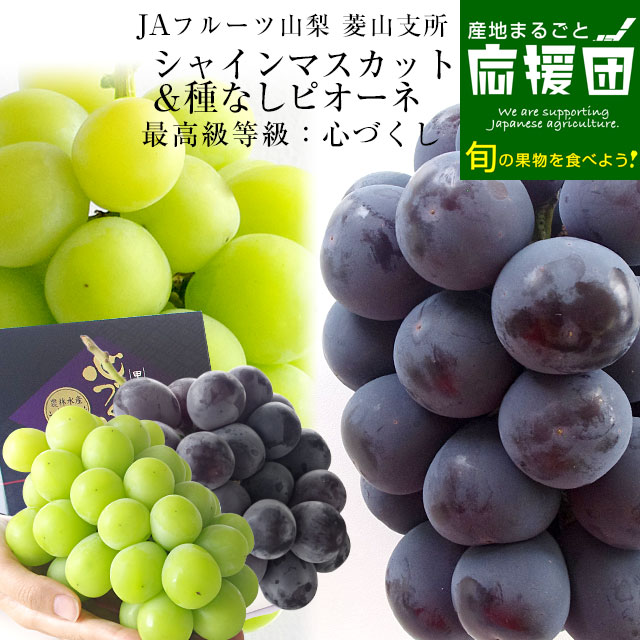 山梨県より産地直送 JAフルーツ山梨菱山支所 シャインマスカット&種なしピオーネ 最高級等級心づくし 約1.3キロ 650g各1房 送料無料 葡萄 ぶどう クール便 爆買