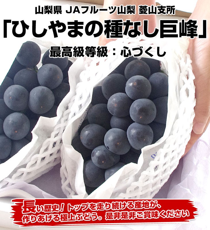 山梨県より産地直送 JAフルーツ山梨・菱山支所 ひしやまの巨峰 最高級等級:心づくし 約1.3キロ(650g×2房) 送料無料 ※クール便 爆買