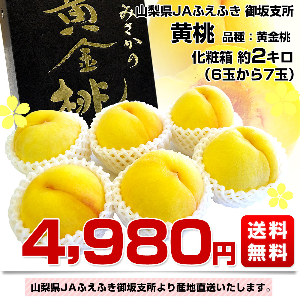 山梨県より産地直送 JAふえふき 御坂支所 黄桃 (品種:黄金桃)化粧箱 約2キロ(6玉から7玉)送料無料 桃 もも ピーチ モモ 黄桃 黒箱 ギフト 夏ギフト お中元