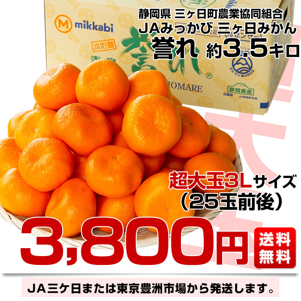 静岡県産 JAみっかび 三ケ日みかん 誉れ 超大玉3Lサイズ 約3.5キロ ミカン 蜜柑 みかん 送料無料 爆買