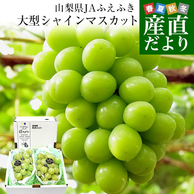 山梨県産 JAふえふき 大型シャインマスカット 約1.2キロ(2房)送料無料 ぶどう ブドウ 種なしぶどう クール便発送