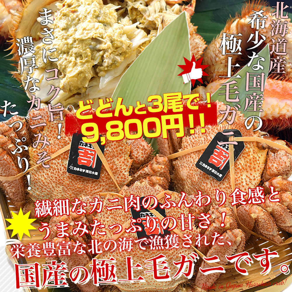 北海道より直送 北海道産 「浜ゆで 毛ガニ」350g前後×3尾入 送料無料 かに カニ 毛がに 毛蟹 爆買