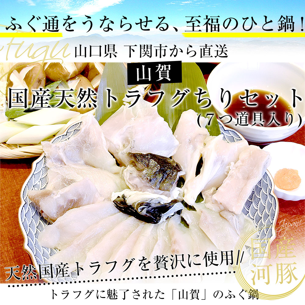 山口県下関市から産地直送 山賀 トラフグちり鍋セット(7つ道具入り) 国産天然トラフグちり(約400g) 送料無料 ふぐ ※クール冷凍便 爆買