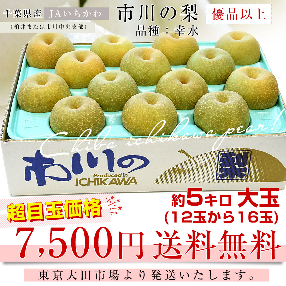 千葉県産 JAいちかわ 市川の梨 (柏井または市川中央支部)優品以上 大玉 約5キロ (12玉から16玉) 品種:幸水 送料無料 梨 なし ナシ