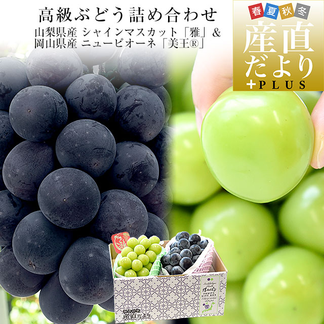 高級ぶどう詰め合わせ 山梨県産 シャインマスカット「雅」&岡山県産 ニューピオーネ「美王(R)」合計約1.2キロ(各1房) 送料無料 種なしぶどう フルーツギフト