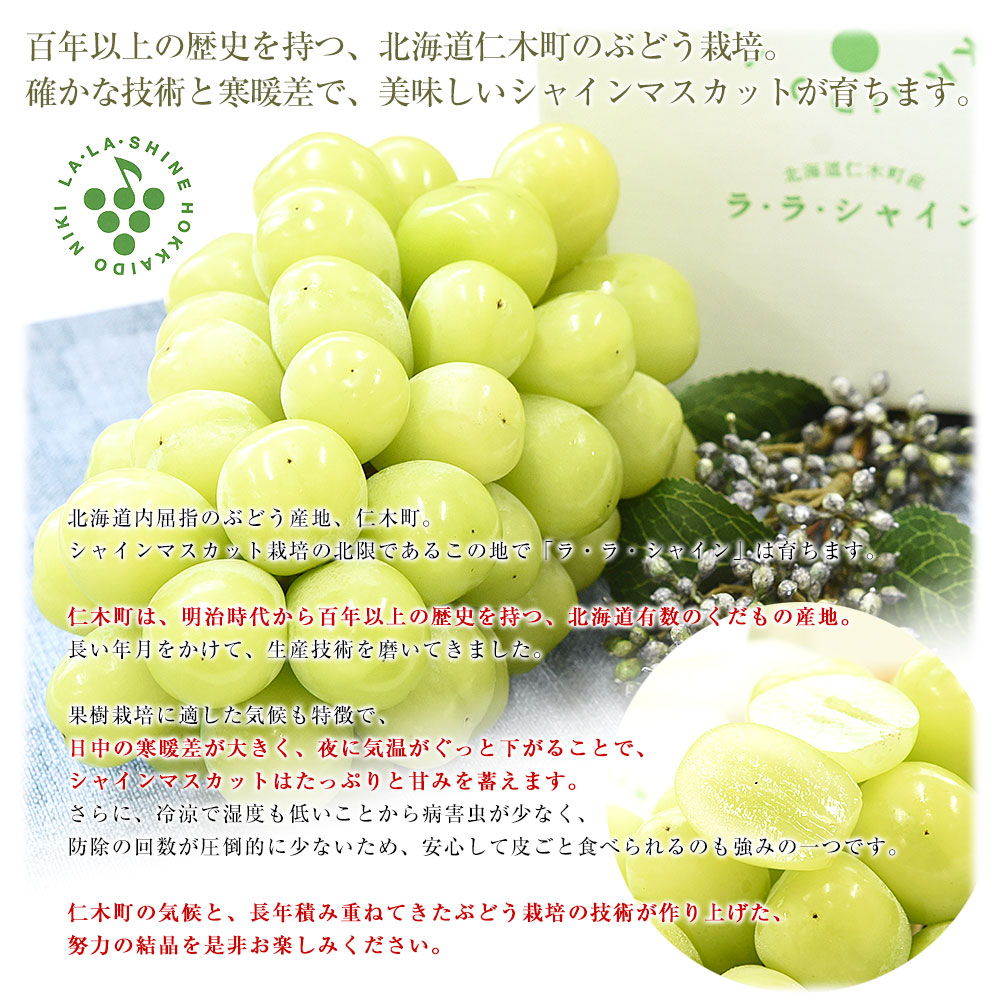北海道から産地直送 JA新おたる 仁木ハウスぶどう生産組合 シャインマスカット「ラ・ラ・シャイン」1房(650g以上)化粧箱 送料無料 ギフト クール便