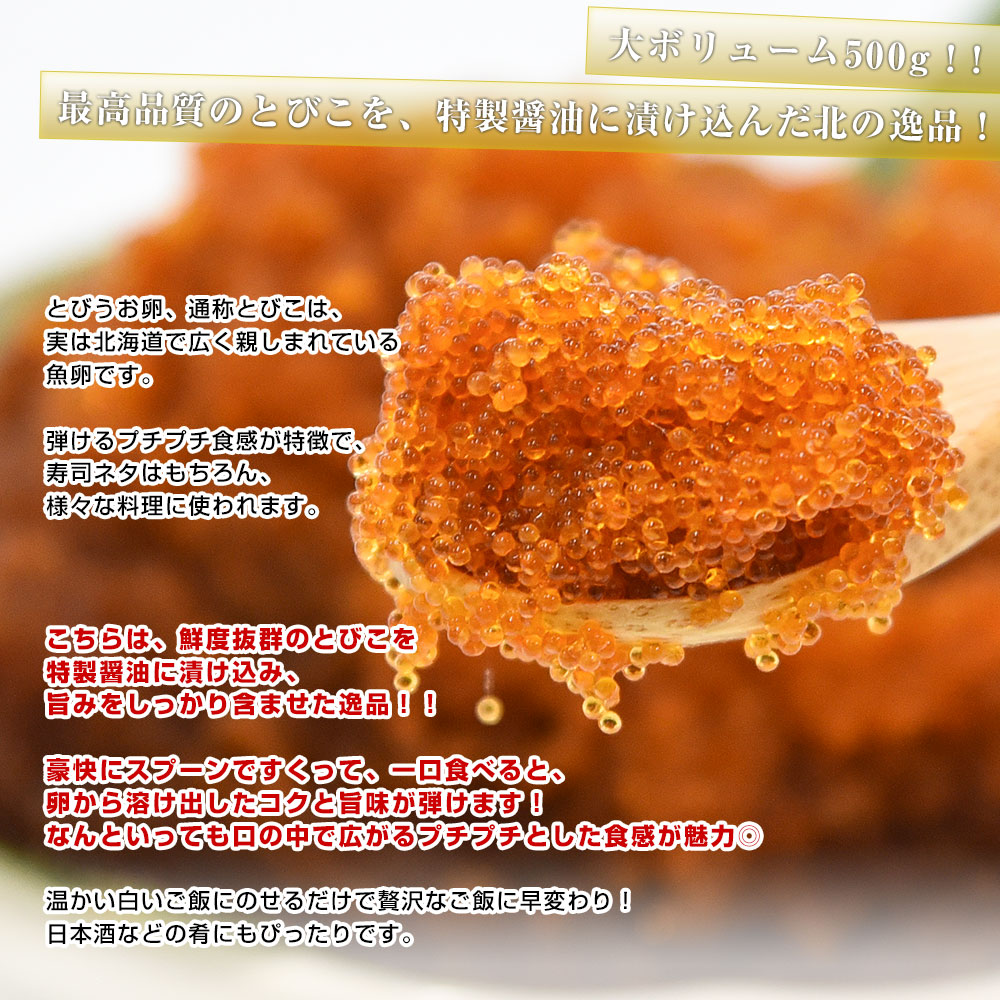 北海道から直送 北海道加工 とびうお卵醤油漬け 約500g 送料無料 とび子 とび卵 トビ卵 爆買