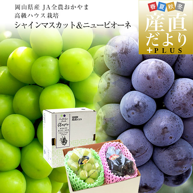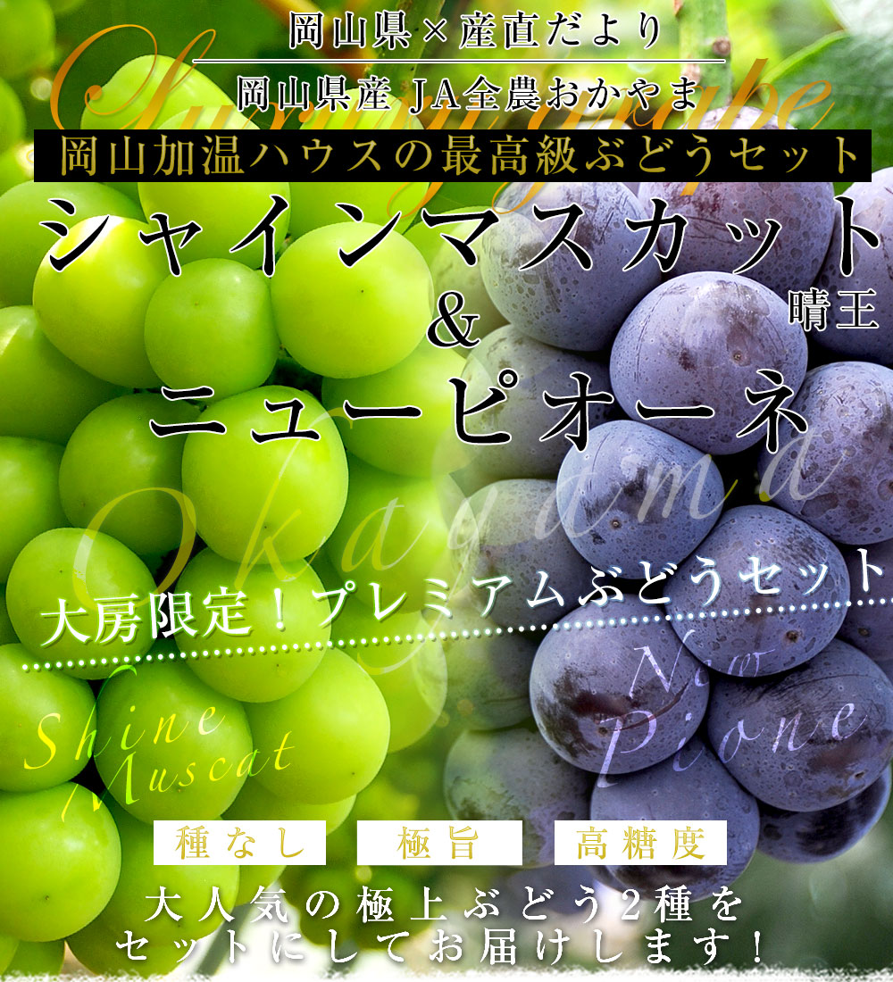 岡山県産 JA全農おかやま 高級ハウス栽培 シャインマスカット&ニューピオーネセット 青秀品以上 大房 合計約1.2キロ (600g前後×2房) 送料無料 ※クール便