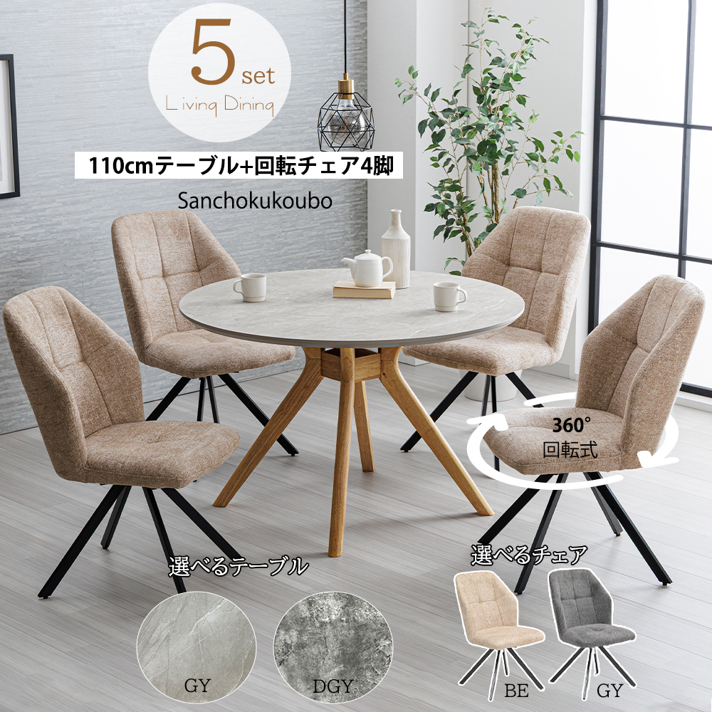 BLZE ダイニング5点セット 110丸テーブル + 回転チェア4脚 セット販売 メラミンテーブル 5点セット 丸テーブル 丸型 円形 食卓5点セット mate 産地直送価格 PR