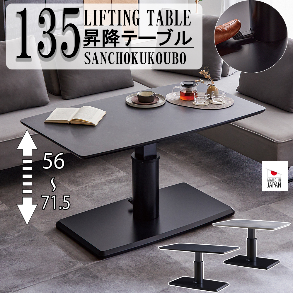| 商品説明 | 昇降テーブルダイニングテーブル幅135cmは、現代の住空間に最適な多機能家具です。 テーブルは、高さ約56cmから71.5cmまで調節可能で、ダイニングテーブルとしても、リビングのセンターテーブルとしても使用できます。 メラミントップ仕様で耐久性があり、日常の使用にも耐える設計です。 オイルダンパー式の昇降機能により、スムーズかつ静かに高さ調整が可能です。 さまざまなシーンでの利用が想定され、家族の集まりや友人を招いた際にも活躍します 。シンプルで洗練されたデザインは、どんな室内装飾にも自然に溶け込みます。 日本工場製作