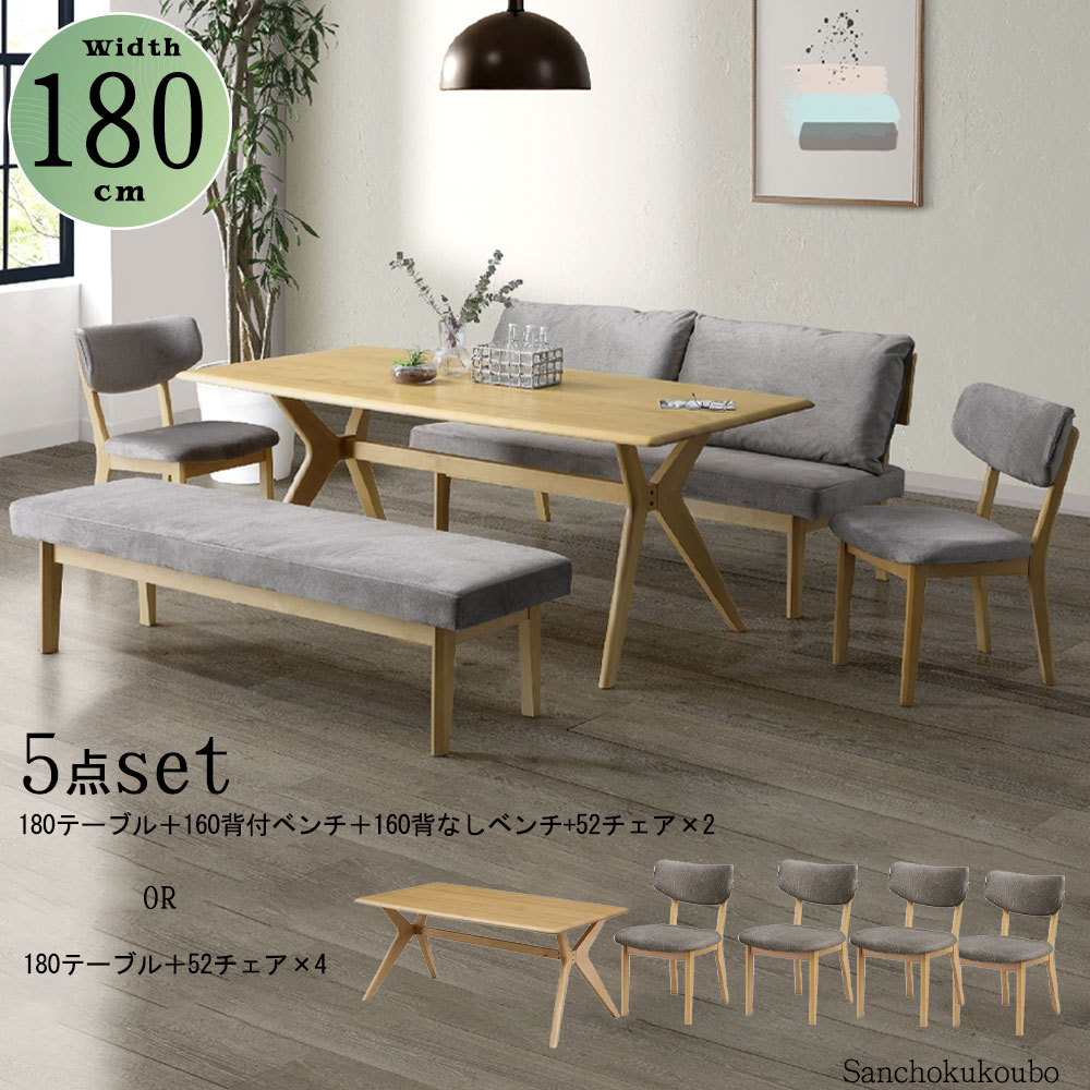 EML LD5点セット 180テーブル + 160背付ベンチ + 160背なしベンチ + 52チェア×2脚 食卓5点セット 180テーブル +52チェア×4脚 産地直送価格 PR P=10