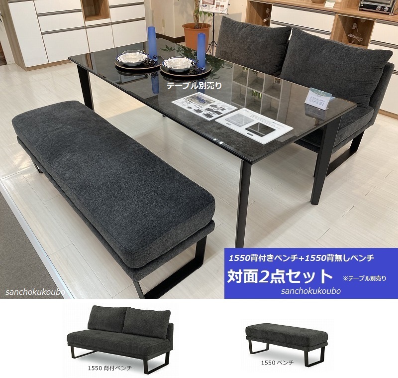 □155背付きベンチ+155背無しベンチの2点セットとばら売り単品販売。