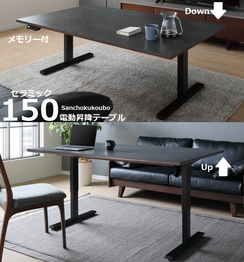 BLO セラミック 幅150 電動 昇降テーブル 高さ調節 昇降 メモリー機能付 リフティング テーブル 電動昇降式 セラミック天板 K=10000