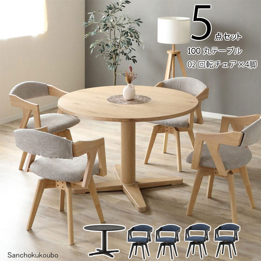LAV ダイニング5点セット 100丸テーブル + 02回転チェア×4脚 セット 丸テーブル 円形 ラウンド天板 オーク突板 NGR DGR 回転 ファブリックカバー付 K=20000