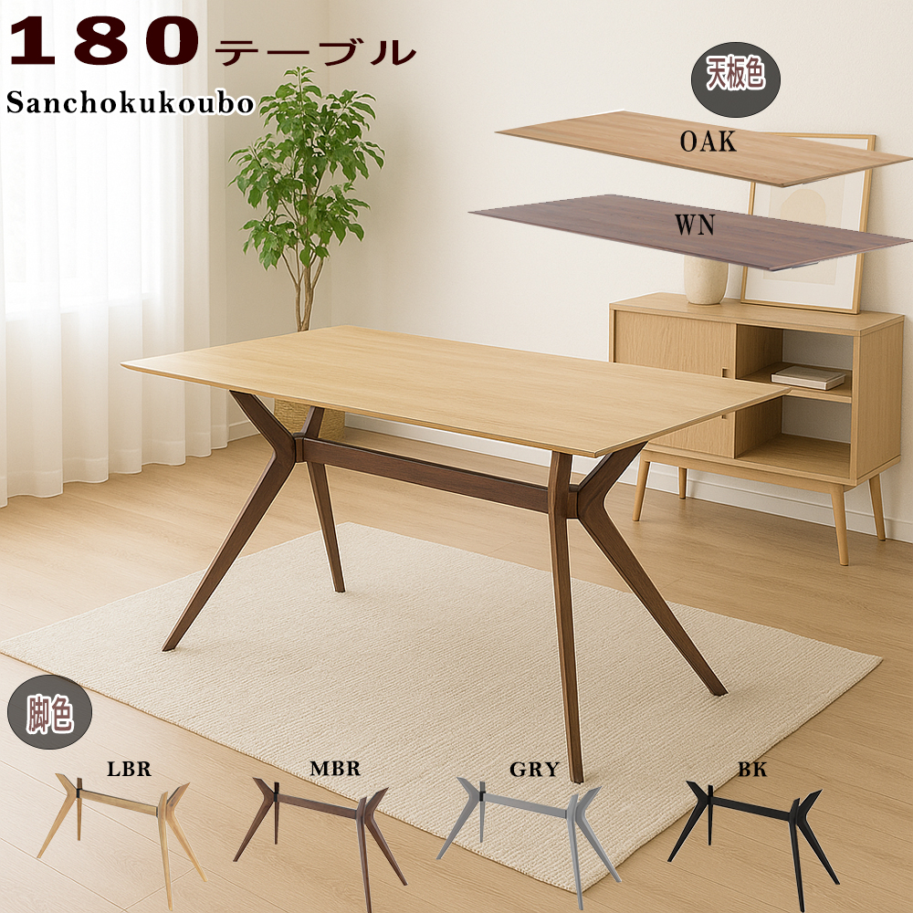 ORS 食卓 180テーブル ウォールナット突板 オーク突板 ダイニングテーブル 木目 木製 6人掛けテーブル ナチュラル リビング 長方形 脚Xタイプ PR or os 10パ引き
