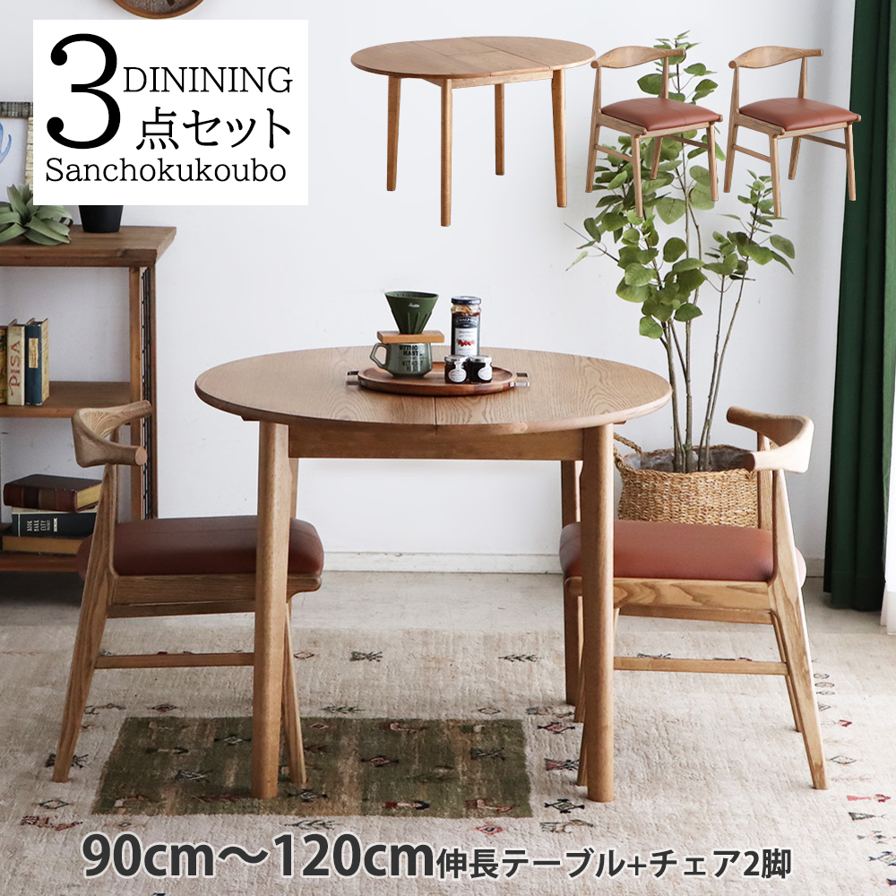 ![]() 《3点セット(90〜120cm伸長テーブル+チェア2脚)》 |
