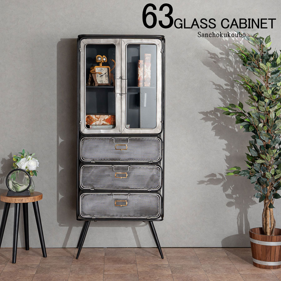 RIS 63ガラスキャビ キャビネット 幅63cm サイドボード リビングボード チェスト おしゃれ エイジング ヴィンテージ感 収納家具 産地直送価格 卸売り PR