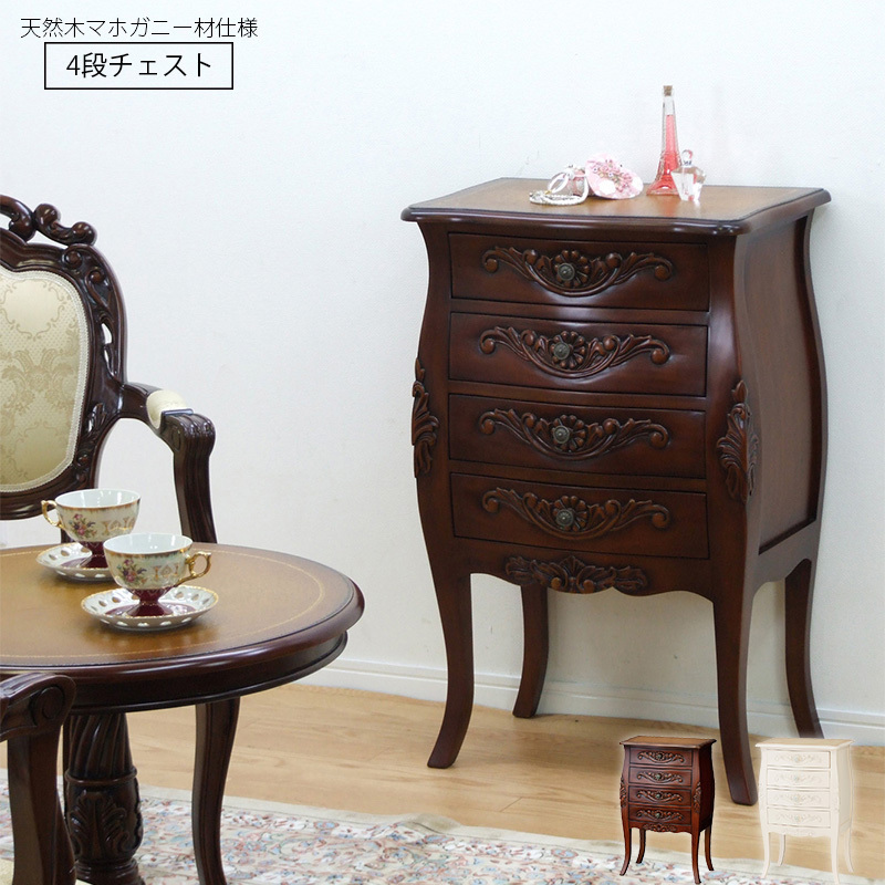 アンティーク チェスト 4段 キャビネット おしゃれ 引き出し 収納 エレガント 完成品 天然木 マホガニー 猫脚 姫家具 クラシック エレガンス 新生活