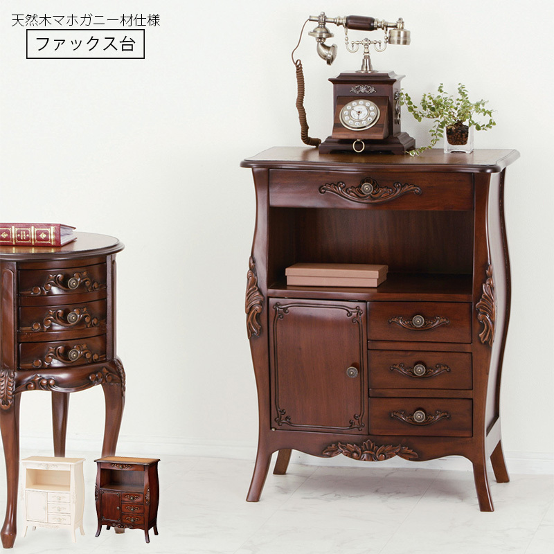 アンティーク FAX台 キャビネット ファックス台 おしゃれ 引き出し 収納 エレガント 完成品 天然木 マホガニー 猫脚 姫家具 クラシック エレガンス 新生活