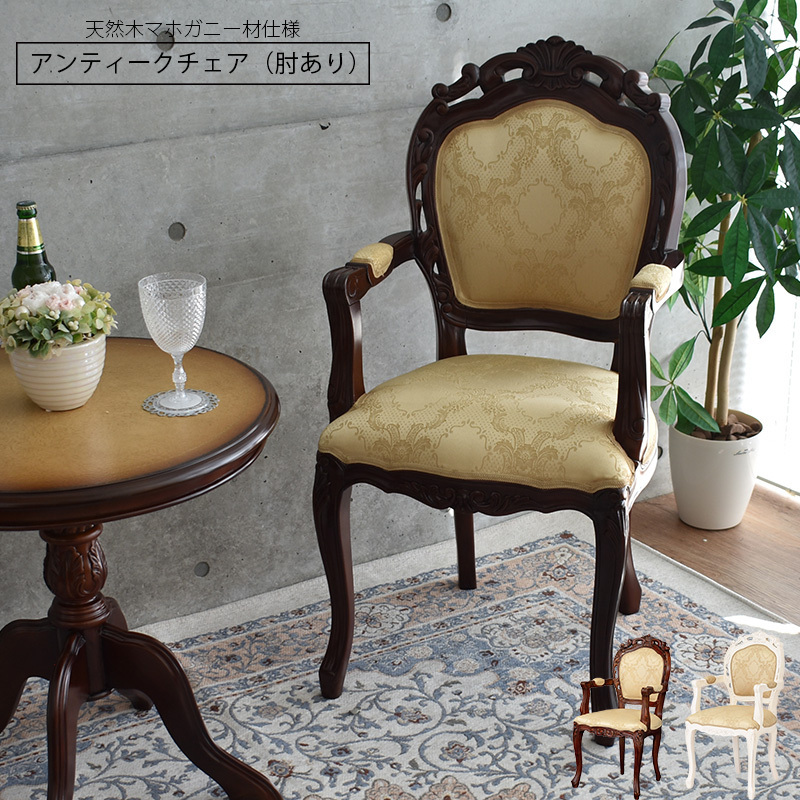 ダイニングチェア 椅子 肘あり クッション おしゃれ エレガント 完成品 天然木 マホガニー 猫脚 姫家具 アンティーク クラシック エレガンス 一人暮らし 新生活