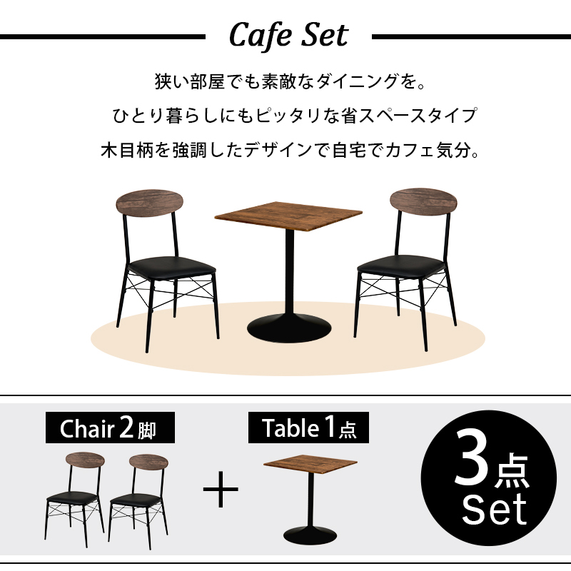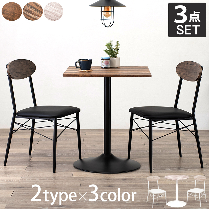 ダイニングテーブルセット 3点セット カフェテーブル 2人 二人用 円 丸型 正方形 おしゃれ ホワイト 白 ブラウン 北欧 モダン 安い 新生活 一人暮らし
