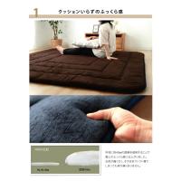 ボリュームタイプのラグです。中材にはクッション性にこだわった国産の固綿40mmを使用しています。十分な弾力性があるのでフローリングでのご使用にも最適です。