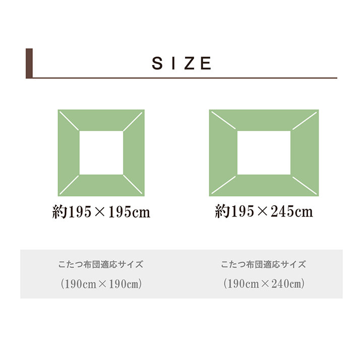 約195×245cm(約190×240cm程度のこたつ布団に対応)