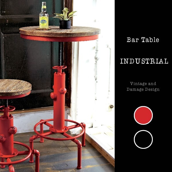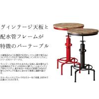 カウンターテーブル バーテーブル 昇降 回転 円形 丸 おしゃれ インダストリアル 天然木 配水管 ハイテーブル 木製 レトロ アンティーク ブラック レッド