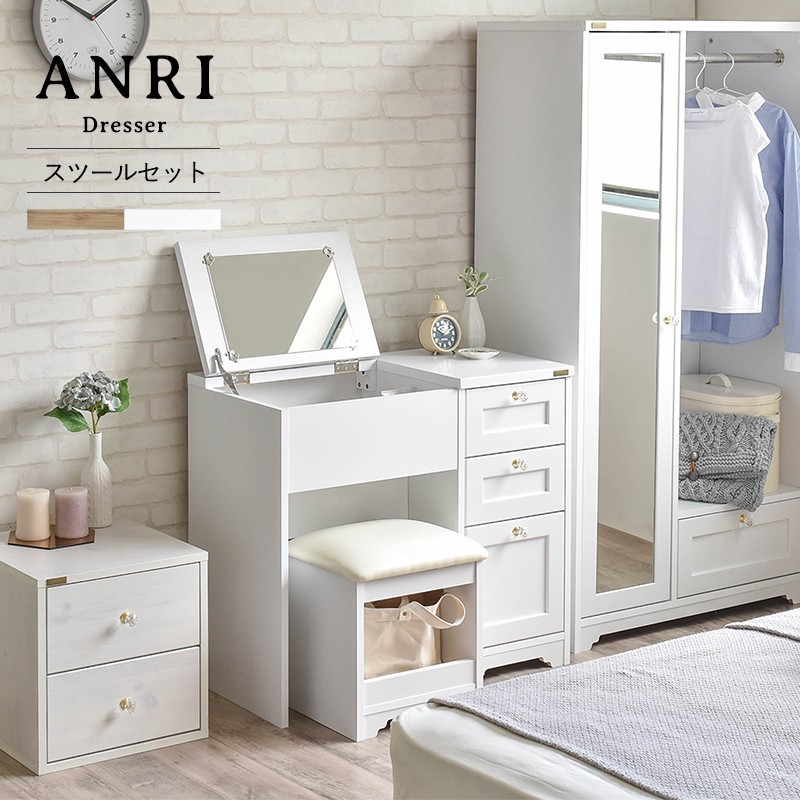 ドレッサー スツール付き おしゃれ 鏡台 一面鏡 ドレッサーデスク コスメ 収納 コンセント ホワイト 姫家具 かわいい 木製 北欧 引出し 一人暮らし 新生活