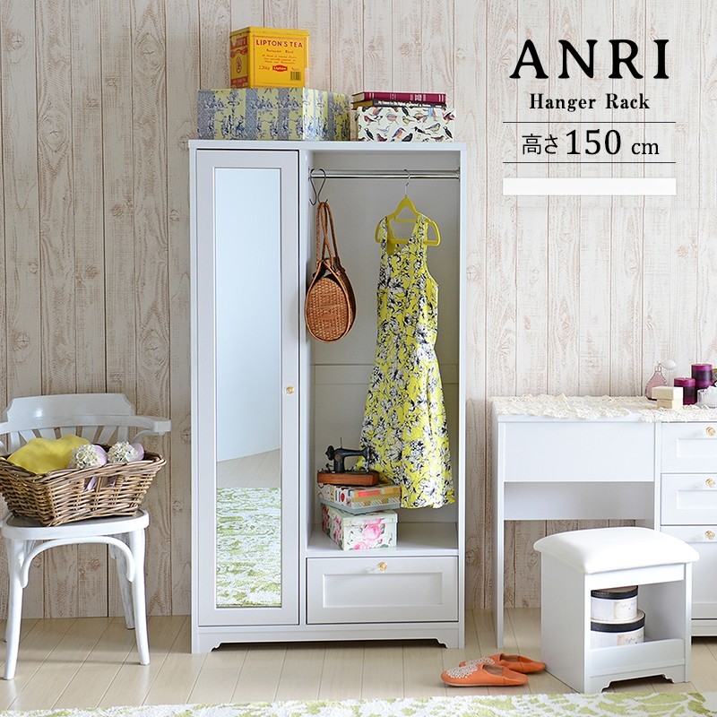ハンガー ラック ミラー アンティーク おしゃれ 幅80 高さ150 衣類収納 リビング 収納 姫家具 かわいい 引出し 木製 北欧 一人暮らし 新生活