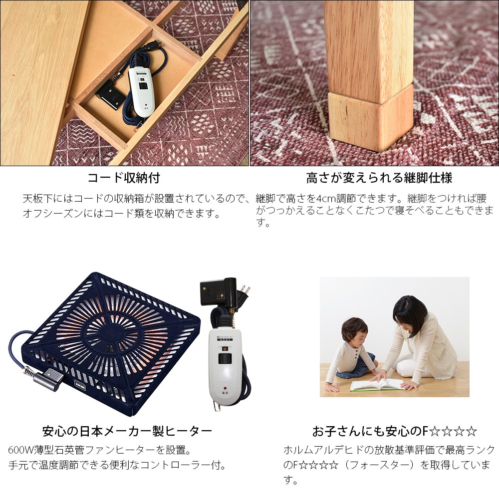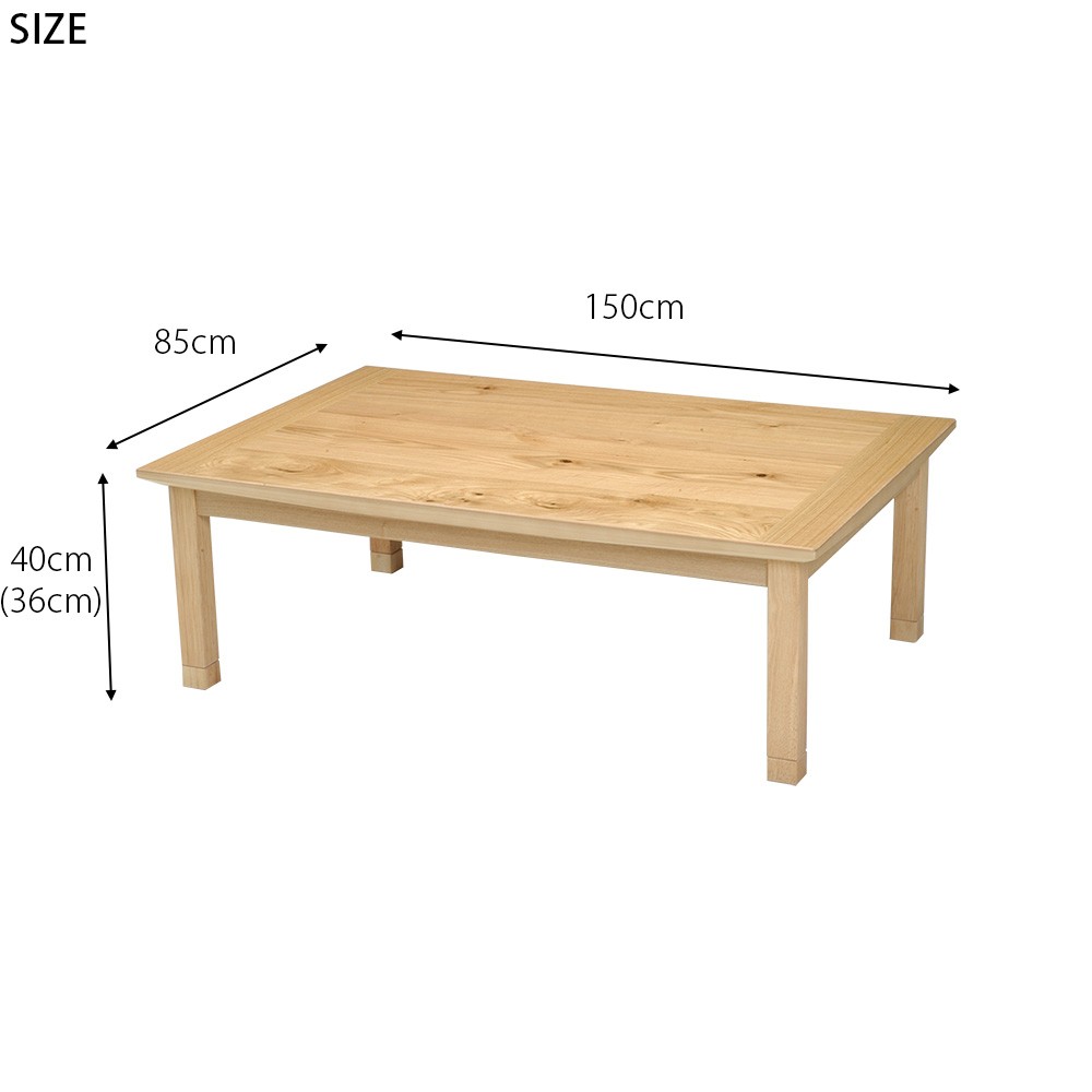 こたつ 長方形 150 国産 日本製 おしゃれ 北欧 モダン 天然木 ナラ こたつテーブル 150×85cm 高級 手元コントローラー 木目 フシ 節あり 新生活