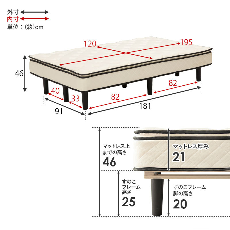 (約)幅120×奥行195×高さ46cm