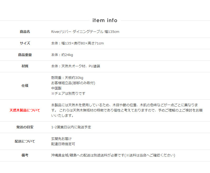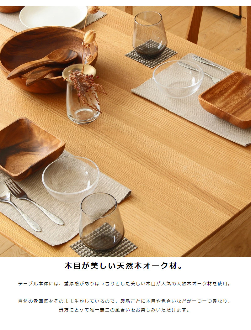 ※本製品には天然木を使用しているため、天板の木目模様や節の位置などは一点ごとに異なります。